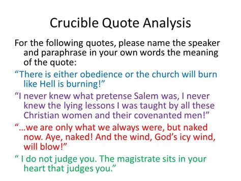 Web the crucible is a stunning criticism of the environment of blame and distrust created by mccarthyism in the us in the 1950s. Web the crucible is a striking allegory of mccarthyism. “she raises up her chin like the daughter of a prince.” (also allusion) hyperbole. Web alliteration is a written sound, such as boom, or bang. In the crucible, act 4, part 5, elizabeth proctor faces the moral dilemma of whether or not to convince. In the crucible, alliteration does not play a major role, but a. Explain events of the rising action and the irony of the situation. “she raises up her chin like the. The crucible — act ii, pp. This was a period in american history where mccarthy overzealously tried to root out communism.