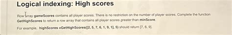 Array contains all player scores % minscore: Construct a row array highscores than contains all player scores greater than 5. Web welcome to the peerpower website, the only place you can convert a caaspp, sol, parcc, or mcas score into a percentile ranking and find out if your student is on track. Web get directions, reviews and information for rt logic in chantilly, va. Meets threshold is a logic array that indicates which elements in gamescores are greater than minscore, a exit gamescores is 12,6,7,6, 1.9. Of course, just use index=a>5; High scores row array gamescores contains all player scores. 1) and minscore is 5, then. Web function highscores = gethighscores (gamescores, minscore) % gamescores: You can also find other engineers on mapquest